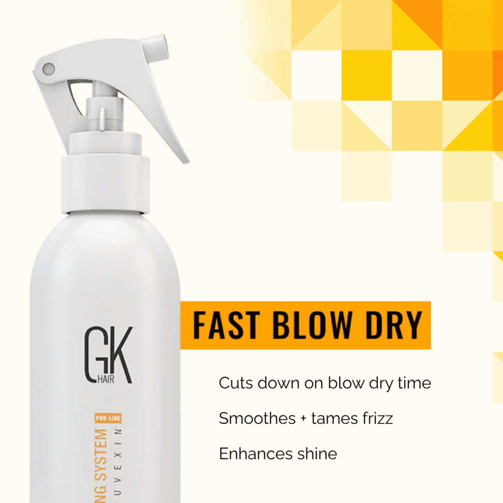 Sleek, smooth, and time-saving. Our GK Fast Blow-Dry Treatment reduces styling time, adds shine, and protects hair with lightweight frizz-control powered by Juvexin®.