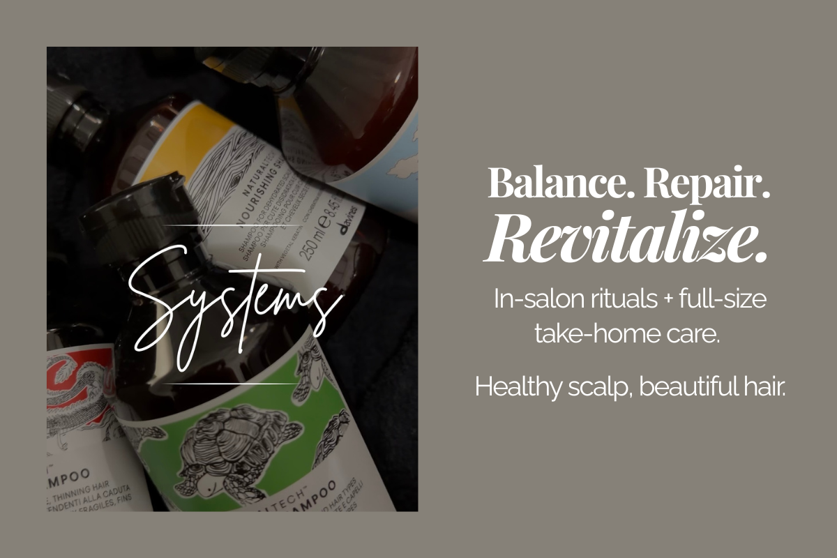 Each product line we use and recommend is chosen with intention — designed to enhance results, support hair, scalp and skin health, and reflect our values of care and consciousness.