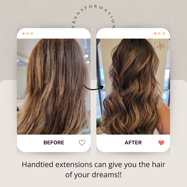 If you’re searching for “the best hair extensions near me,” consider our hand-tied extensions. This method is perfect for those who desire a more natural integration of extensions into their hair. As hair extension experts, we ensure that these extensions are applied with precision and care, giving you a flawless, undetectable finish.