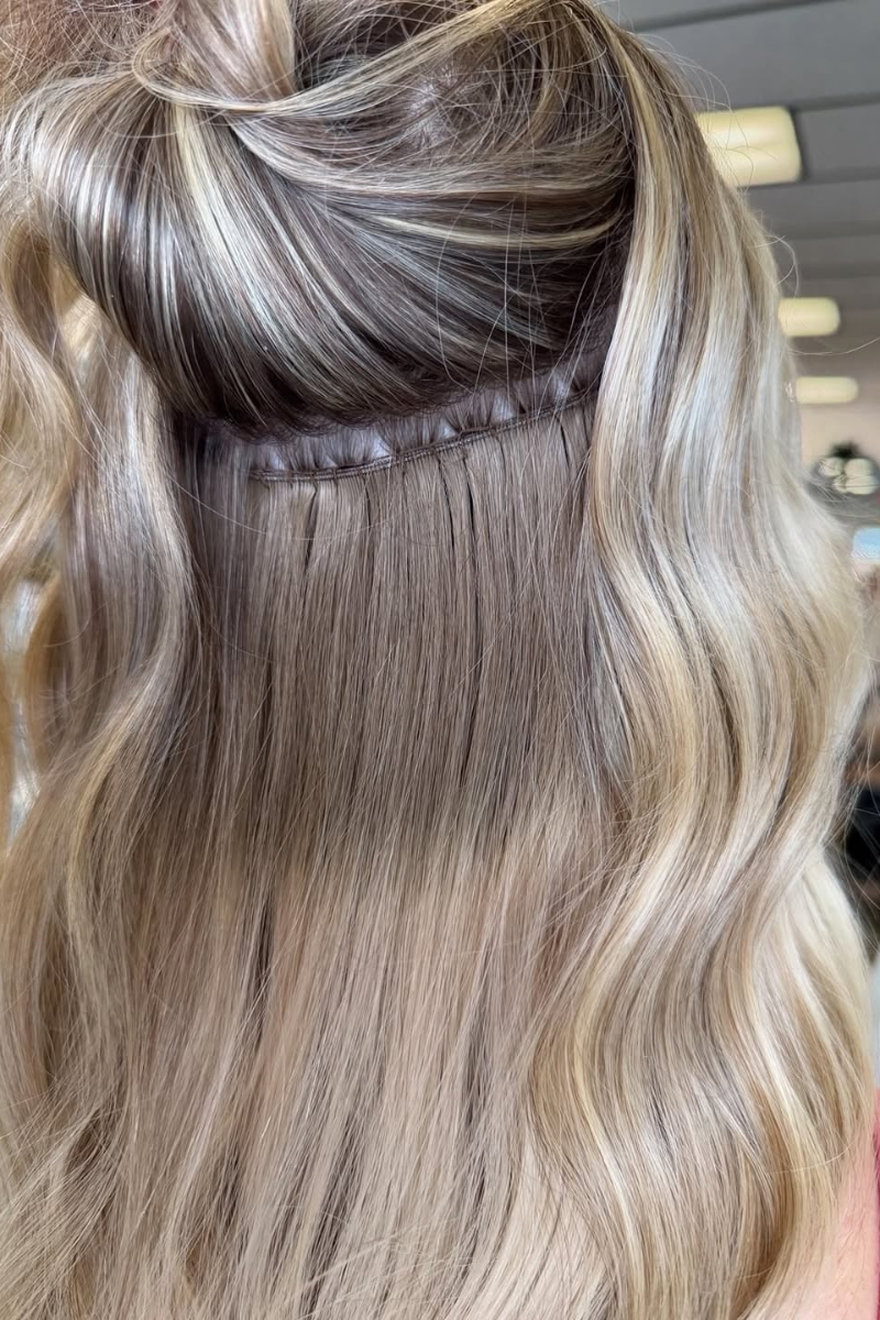 Hand-tied extensions are known for their natural look and customizable placement. They’re ideal for guests looking for maximum fullness and seamless blending with minimal bulk. This method allows us to tailor the density and placement for a truly personalized result.