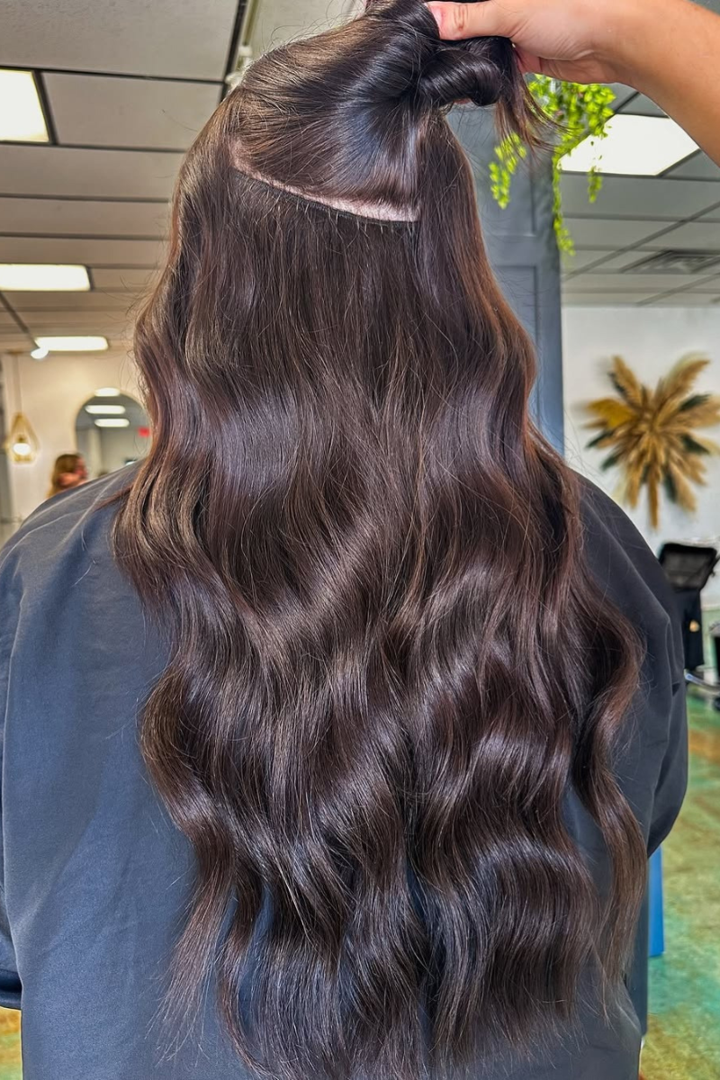 Tape-in extensions are a versatile, lower-commitment option. They’re lightweight, easy to maintain, and perfect for guests looking to add volume, length, or subtle dimension without a more permanent feel.